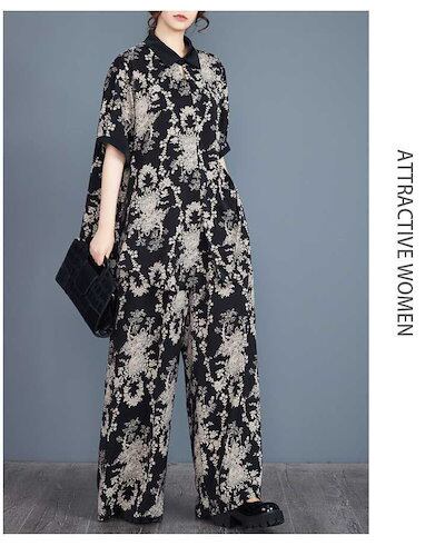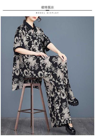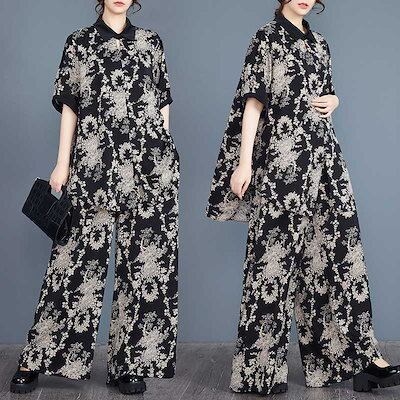 「ファットガール」 2024夏 上下セット 花柄 大きいサイズ 体型カバー レディース ワイドパンツ セットアップ メガ割