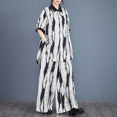 「ファットガール」 2024夏 上下セット 大きいサイズ 体型カバー レディース ワイドパンツ セットアップ メガ割