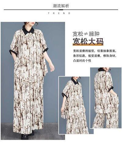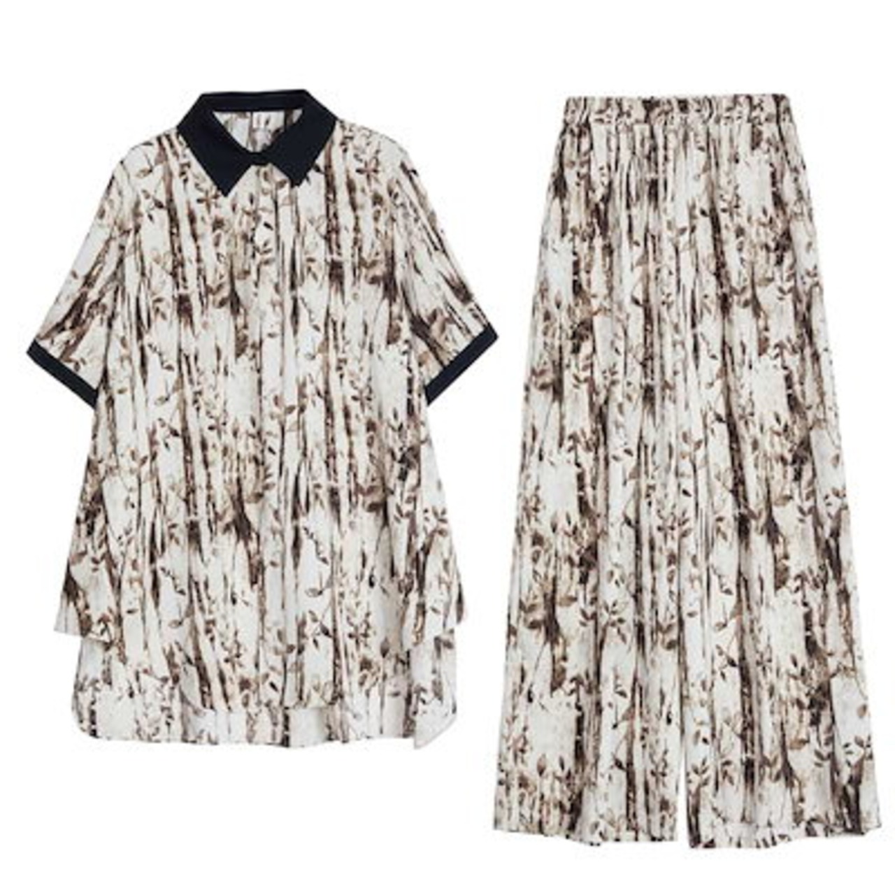 「ファットガール」 2024夏 上下セット 柄 大きいサイズ 体型カバー レディース ワイドパンツ セットアップ メガ割