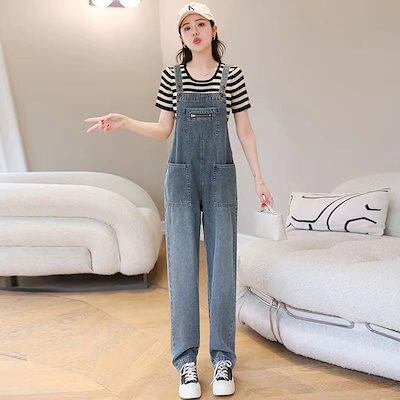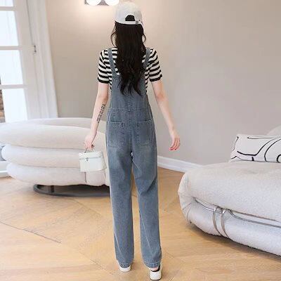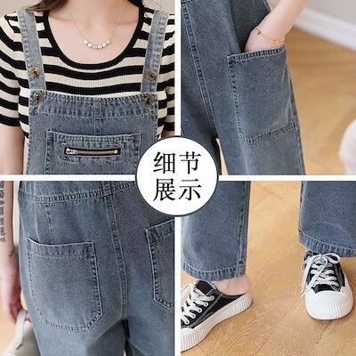ファッション 通勤デニムストラップパンツ 2024 韓国版ゆったり細ストレート サロペット サロペット レディース サロペットパンツ ワイドパンツ