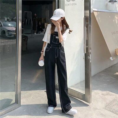 カウボーイパンツ 春秋新作 大きいサイズ 韓国版ルーズストレートジャンプスーツ サロペット サロペット レディース サロペットパンツ ワイドパンツ