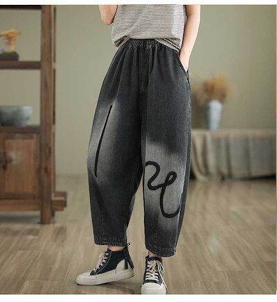 「ファットガール」 2024夏新品 レトロ デニム ワイドパンツ 薄手 九分丈 大きいサイズ 体型カバー レディース ロングパンツ メガ割