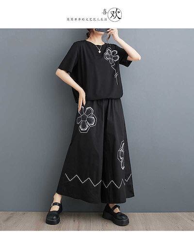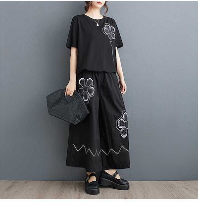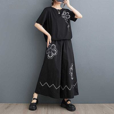 「ファットガール」 2024夏新品 上下セット Tシャツ+ワイドパンツ 花柄 大きいサイズ 体型カバー レディース セットアップ メガ割
