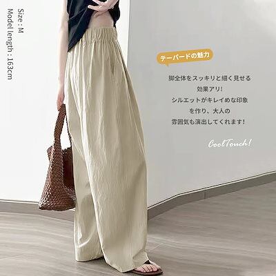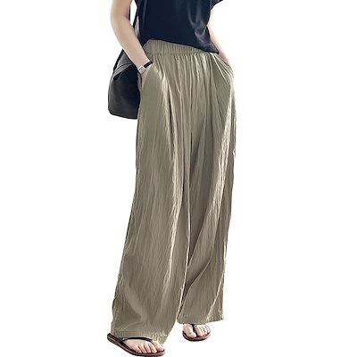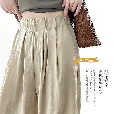 レディース ワイドパンツ カジュアル ゆったり 無地 美脚 春 夏 秋 大きいサイズ 調節可能 柔らか 接触冷感 ウエストゴム 薄い 通気 涼しい 紐付け 通勤 アウトドア 日常服