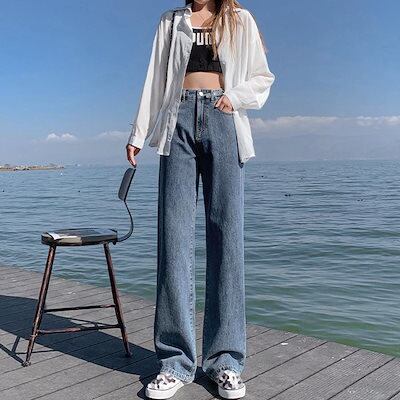 デニムパンツ レディース ジーンズストレートデニムパンツ レディース 美脚