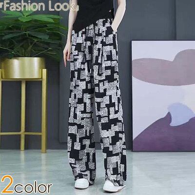ロング丈パンツワイドパンツチェック柄パンツズボンウエストゴムI入りレディースボトムス