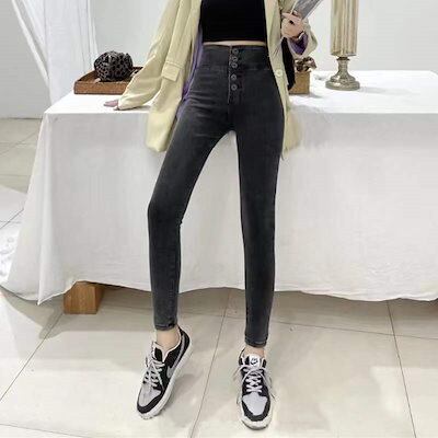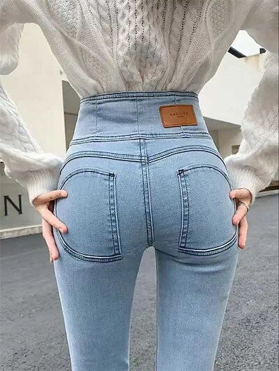 脚長効果!スキニーデニムパンツ ピーチヒップハイウエストジーンズ2024春と秋の新しい弾性タイトヒップリフトペンシルパンツ 韓国