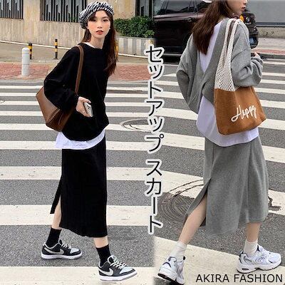 新品掲載!セットアップ スカート レディース 上下セット タイトスカート ベストレイヤード パーカー ウエストゴム ルームウエア 部屋着 カジュアル 無地 シンプル おしゃ