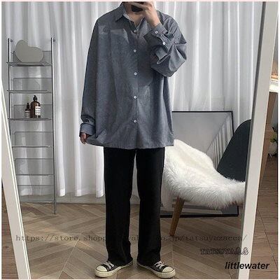 限定SALE!長袖開襟シャツ 中性風 メンズ レディース カップル 綿 カットソー重ね着風 オシャレ 大きいサイズ 秋