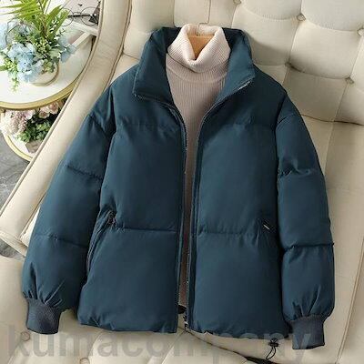 速達!中綿ジャケット レディース ダウンジャケット 袖口ゴム 立ち襟 軽量 厚手 ゆったり アウトドア 防寒 暖かい 体型カバー 柔らかい 無地 上品