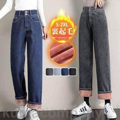 新品更新 デニムパンツ レディース ジーンズ 裏起毛 裏ボア 暖かい 秋冬 ワイドパンツ Gパン ボトムス 美脚 脚長 保温 防風 おしゃれ カジュアル