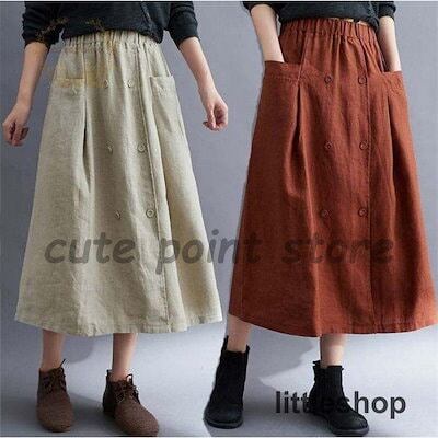 【新品】スカート レディース リネンスカート ロングスカート 春 夏 秋 綿麻風 綿 フレアスカート ミモレ丈 ボトムス ウェストゴム 大人 きれいめ 洗える 通勤