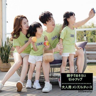 新品大人気 親子ペアルック Tシャツ ハーフパンツ セットアップ 単品販売 メンズ レディース 半袖 お揃い ボーダー柄 短パン ズボン ロゴ リンクコーデ おそ