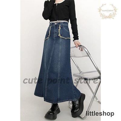 【早い者勝ちタイムセール】デニムスカート レディース ロング丈 着痩せ Aライン 体型カバー ハイウエスト 着回し ストレッチ カジュアル タイト 春夏秋 お洒落