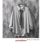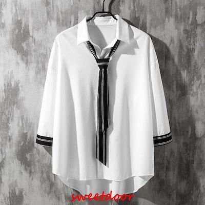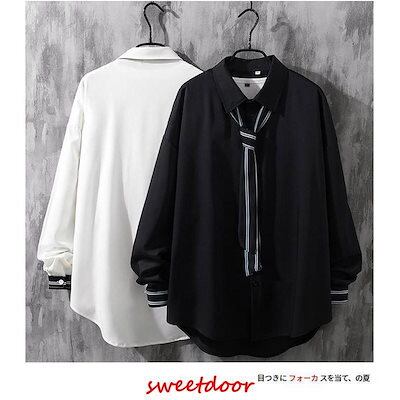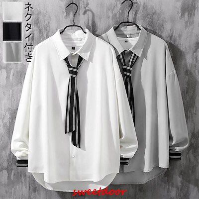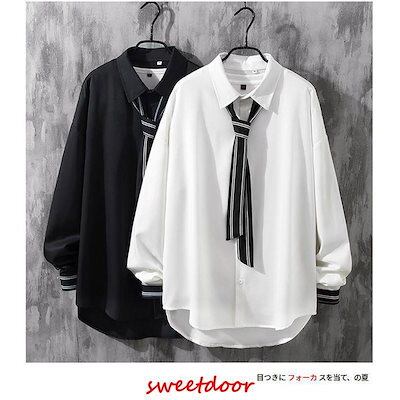 人気 ネクタイ付き シャツ 長袖シャツ メンズ レディース カジュアルシャツ 大きいサイズ トップス 春物 夏 白シャツ ドロップショルダー おしゃれ ファッション