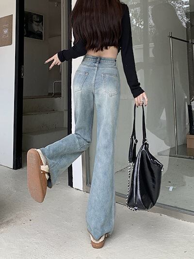 新作 秋 アメリカンブルーのワイド脚フレアジーンズレディース新型ハイウエストでゆったりとした着痩せストレートの毛並みが長めのパンツ デニムパンツ メガ割