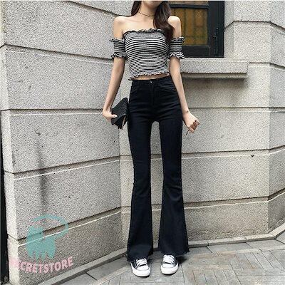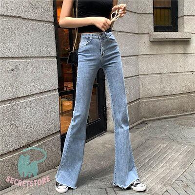 新品(タイムセール)フレアパンツ デニムパンツ レディース ジーンズ ボ ハイウエスト ロング丈 カシュアル 体型カバー 着痩せ 美脚 春秋 細身 ストレッチ