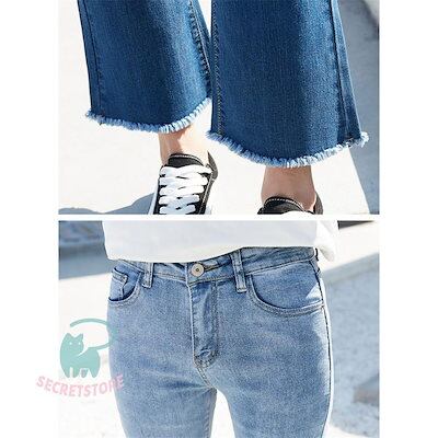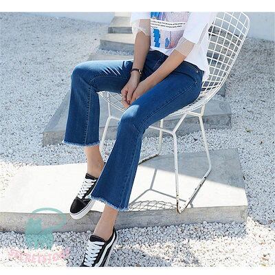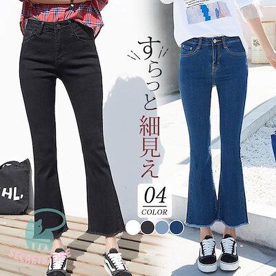 新品(タイムセール)フレアパンツ デニム レディース ジーンズ ズボン 九分丈 ボ ハイウエスト ロング丈 カシュアル 体型カバー ゆったり 美脚 春秋 細身