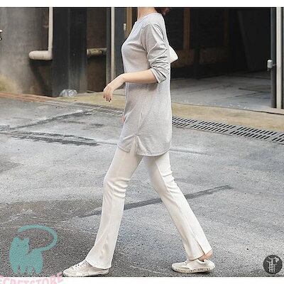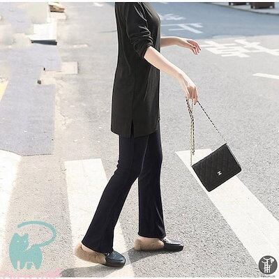新品(タイムセール)リブレギンス スリット レギンスパンツ レディース ボ スキニー フレアレギンス ベルボトム 裾広 メロウ 伸縮性 不可