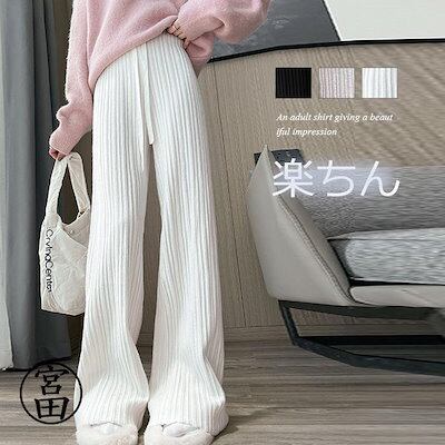 冬の暖かさ!ワイドパンツ 秋冬 ガウチョパンツ パンツ レディース ロングパンツ フレアパンツ ニット パンツ ニットパンツ ロング丈 秋物 ウェストゴム 体型カバー リブニッ