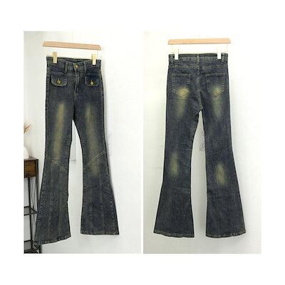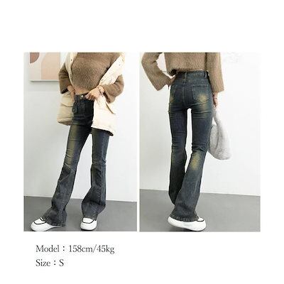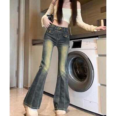 流行のスタイル デニムパンツ レディース ジーンズ レトロ セミフレアデニムパンツレディース
