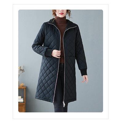 キルティングコート 中綿コート レディース ロング丈 中綿ジャケット ジップアップ ブルゾン 裏ボア 羽織 一部即納 秋冬 アウター 防寒 体型カバー 無地