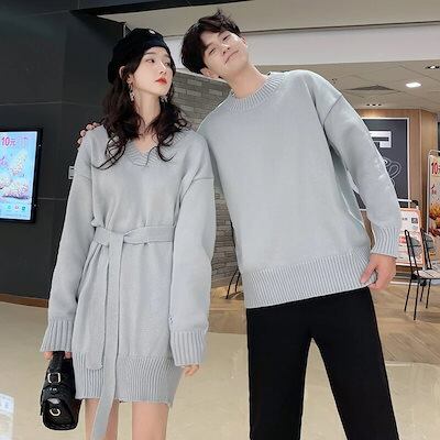 ペアルック セーター カップル今週の割引は 25% オフですニット レディースセーターワンピース メンズ 韓国 男女兼用 秋冬無地