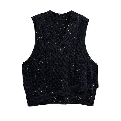 【J.Fashion】 vネッ今週の割引は 25% オフですク ニットベスト キラキラ スリット 厚手 レディース ニット 関連商品購入可能 メガ割