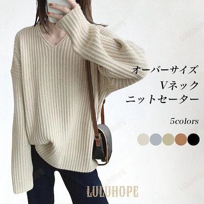 Vネック ニットセーター レディース セーター オーバーサイズ ニット ドロップショルダー レディースニット 抜け感 大人 お洒落 ニットトップス 長袖30%までに制限