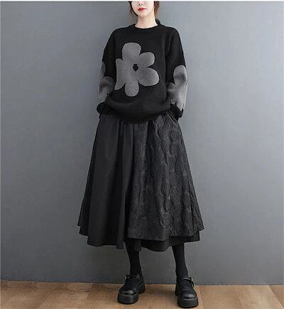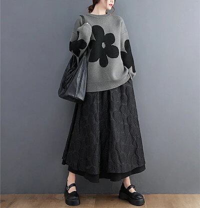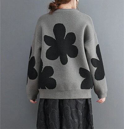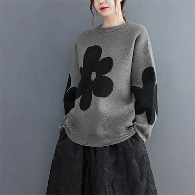 ニット セーター レディース 長袖 ニットトップス 厚手ニット 花柄 配色 セーター ニットセーター 秋冬 クルーネック プルオーバーセーター プルオーバー 通勤 体型カバー 長袖 大人 厚手上品