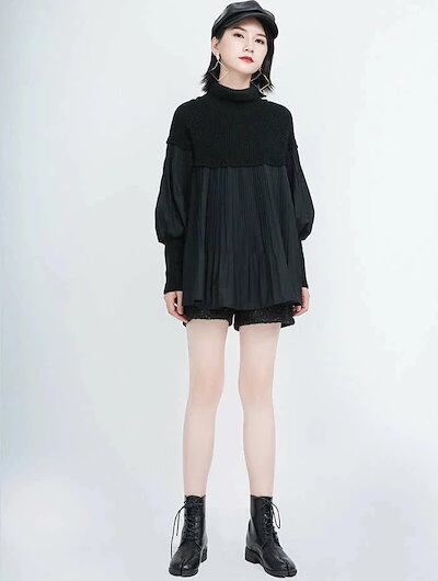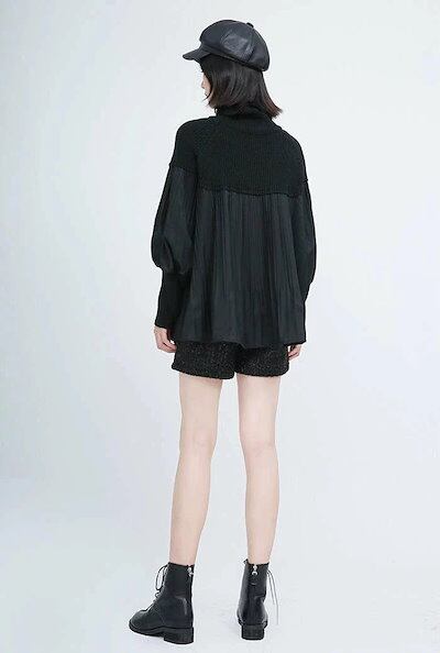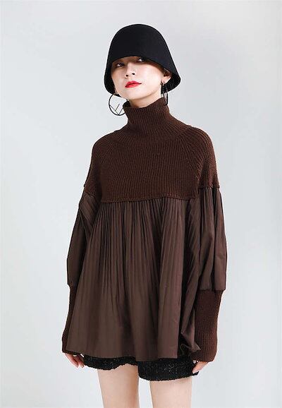セーター 異素材切り替え レディース 長袖 きれいめ ニット ギャザー 大人 女性 トップス オーバーサイズ ドルマン チュニック 春 秋 ゆったり 体型カバー 30代 40代 50代 ハイネック