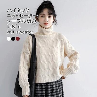 ニットセーターレディースインナー無地ハイネック長袖リブ編みストレッチ性厚30%までに制限