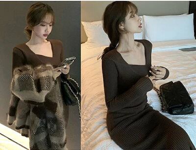 ニットワンピ タイト 長袖 ロング丈 レディース 秋 春 冬 ワンピース 韓国風 きれいめ 20代 30代 40代 ベージュ 黒 ブラウン S M L XL ec127t2t2g4今日は30パーセント