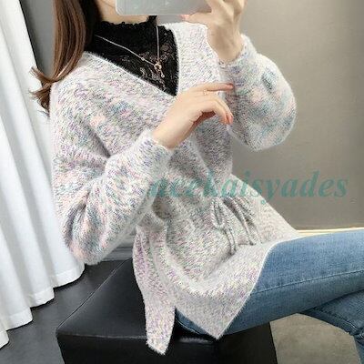 【今季トレンド】ニットセーター レディース 秋冬 フェイクレイヤード トップス 長袖 セーター ニットソー レース ハイネック ショート丈 ニット ゆったり オシャレ 通勤 30代