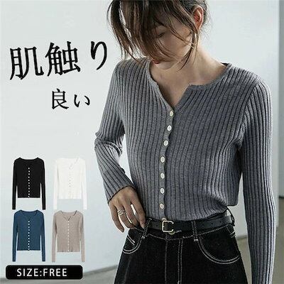 リブニット 長めのリブ袖と襟元がポイントの抜け感ニット Vネックニット プルオーバー レディース ニット カシュクール ざっくり ゆる シンプル 大人 春 20代 30代 かわいい 着痩せ インナー