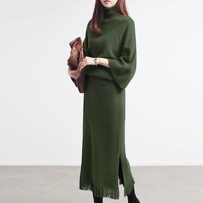 上下レディースセットアップ ニット アウター 二点セット ベーシックニット 秋冬 新作 おしゃれ 気質 セーター ワイドパンツ セットアップ 通勤 長袖セーター 福袋