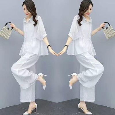 2024夏 二点セット 夏 気質 着痩せ セットアップ レディース カジュアル 夏服 ワイドパンツ 日焼け防止 ゆったり ロングズボン ルームウェア 韓国ファッション ホームウェア