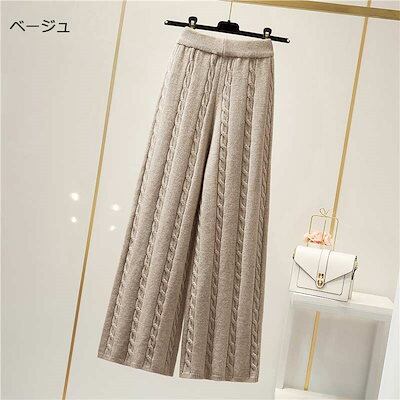 パンツ レディース ワイドパンツ 秋冬 ガウチョパンツ ニット ボトムス ロングパンツ ワイド ズボン リブニット ワイドパンツ 大きいサイズ 洗える ゆったり 体型カバー コーデ おしゃれ 秋冬 お