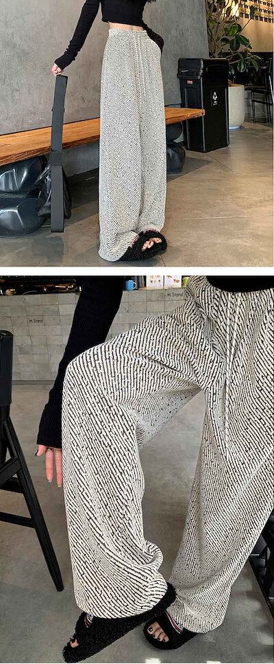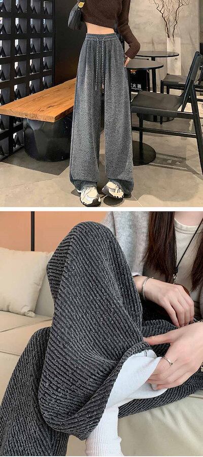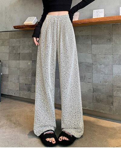 ワイドパンツ 冬 ウエストゴム パンツ レディース 秋冬 裏起毛 起毛なし 2タイプ ロングパンツ ラメ 裏ボア ストレートパンツ ボトムス 体型カバー ロング ズボン 斜めボーダー 大きいサイズ ハ
