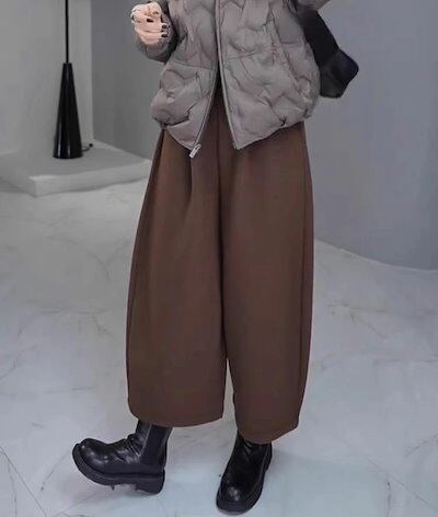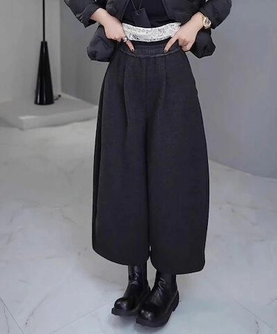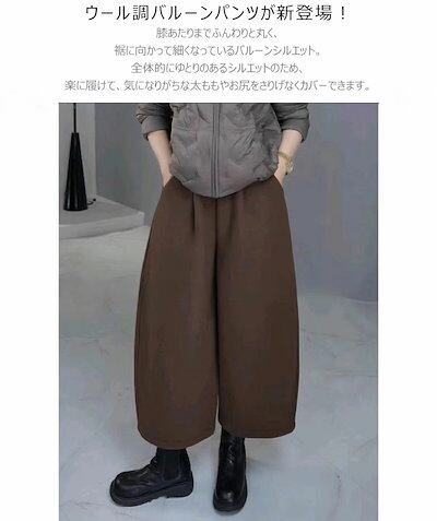 バルーンパンツ ワイドパンツ 無地 レディース 秋冬 パンツ ウエストゴム 九分丈 ラシャ コクーンパンツ ポケット付き ロングパンツ ハイネック ゆったり ボトムス ズボン 体型カバー ラシャパンツ