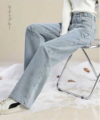 裏起毛 デニム ワイドパンツ 秋冬 レディース ストレートパンツ パンツ ボトムス ハイウエスト デニムパンツ ポケット付き ウエストは調節できる 春 秋冬 きれいめパンツ 美脚 大きいサイズ オシャ