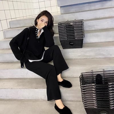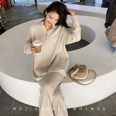 新作 おしゃれ シンプル レディースセットアップ セーター ワイドパンツ 二点セット 気質 セット ニットセットアップ7