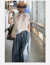 デニムワイドパンツ レディース 大きいサイズ ワイドパンツ ウエストゴム デニムパンツ ウチョパンツ フレアパンツ ボトムス カジュアル 無地 ロングパンツ 大人 楽ちん ゆったり カジュアル お腹