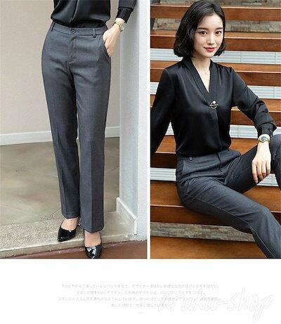 スラックス ビジネス フォーマル パンツ レディース スーツパンツ ストレートパンツ 美脚 オフィス パンツ ストレート ロング