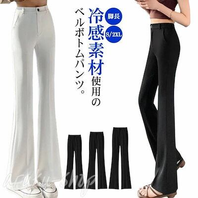 ベルボトムパンツ フレアパンツ レディース スラックス アイスシルクパンツ ベルボトム パンツ 美脚パンツ スーツパンツ 接触冷感 おしゃれ 脚長 きれいめ カジュアル ブラック ホワイト 体型カバー