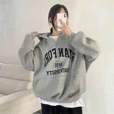 ファスナー スウエット 大きい 韓国 パーカー 裏起毛 厚手 パーカー レディース ゆるい カジュアル 大きい
