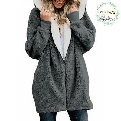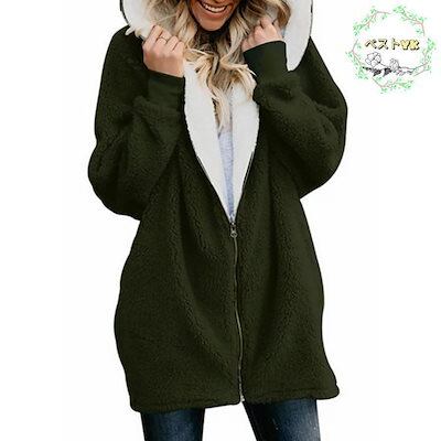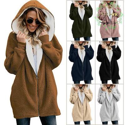 パーカー 長袖 ジップアップ 裏起毛 ボア もこもこ フード タックドカフス ゆったり レディース アウター 冬 防寒 寒さ対策 無地 シンプル カジ