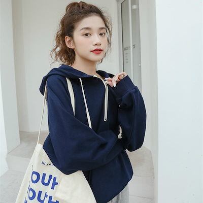 レディース パーカー フード付き プルオーバー スウェット ジッパー 長袖 トレーナー トップス カジュアル 可愛い ェミニン 学生 爽やか 春 おしゃれ デイリー 普段着 ネイビー イエロー フ
