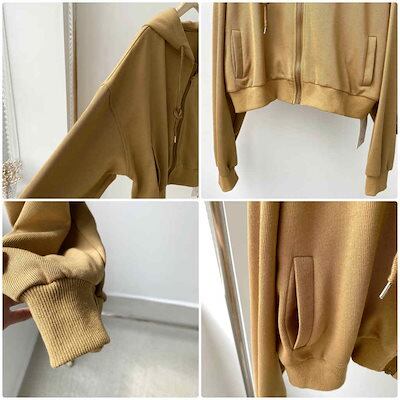 レディース ライトアウター ショート パーカー フード付き 無地 長袖 秋冬 カジュアル 大人可愛い ラフスタイル フェミニン オフィス お出かけ デート デイリー ベージュ ブラック S M