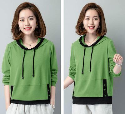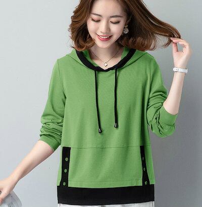 レディース 婦人服 トップス パーカー フード付き プラスティックボタン ショート丈 バイカラー カジュアル ショート丈 ミセス シニア 20代 30代 40代 50代 60代 大人可愛い カジュアル